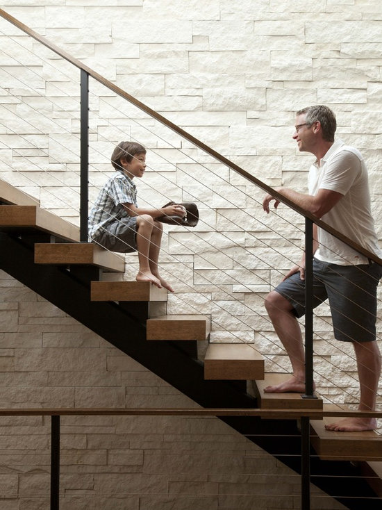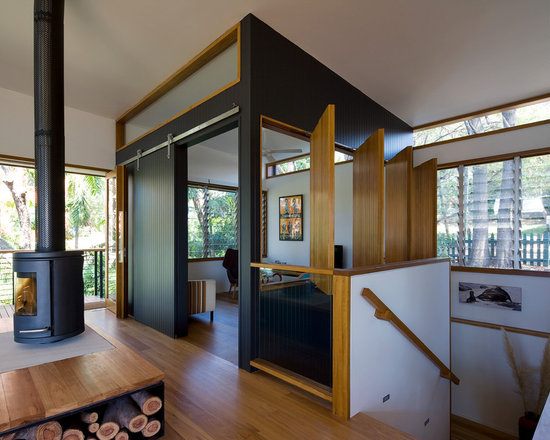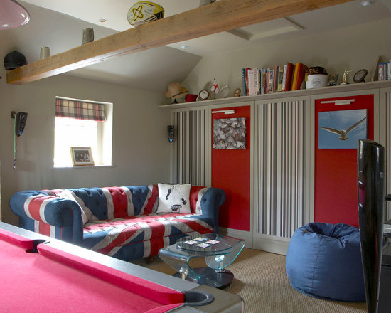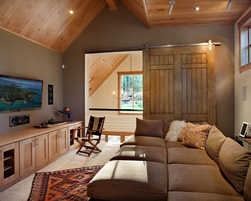| Inspiration for a mid-sized contemporary enclosed family room in San Francisco with brown walls and a wall-mounted tv |