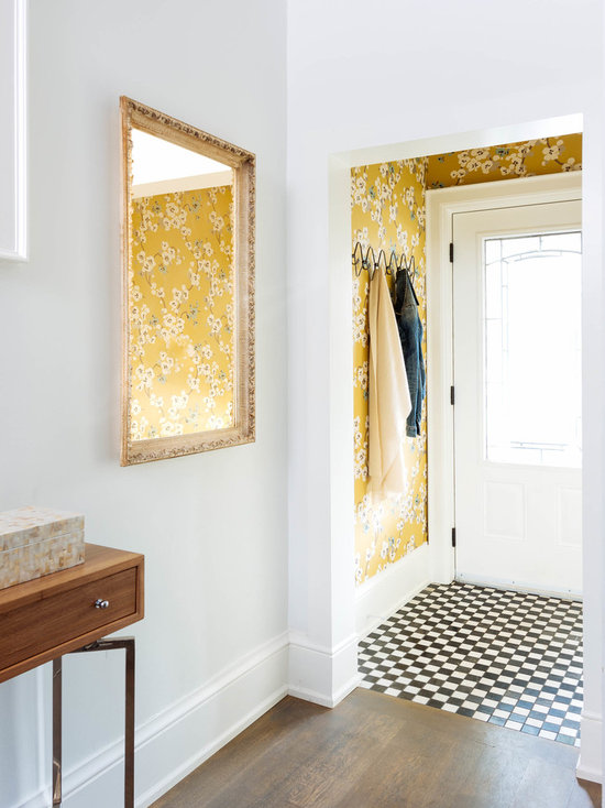 small eclectic vestibule in Toronto with multicolored walls