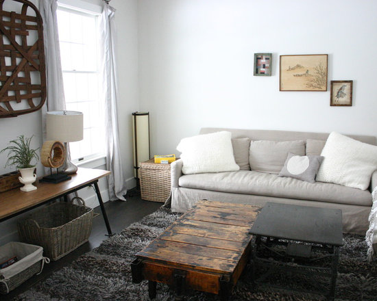 Design ideas for an eclectic living room with white walls